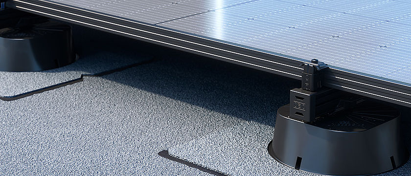Na plochých střechách zajišťuje systém Magic PV Flat Pro nejenom bezšroubovou instalaci bez nutnosti použití nářadí. Přesvědčí vás také flexibilními systémovými prvky a systémem závaží UniBase pro variabilní zatížení celého systému.