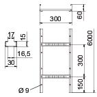 Popis výrobkuKabelový žebřík s výškou bočnice 60 mm a s přinýtovaným nahoru otevřeným profilem C příčky.