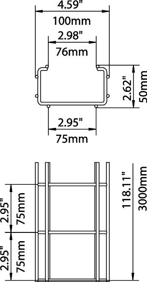 Popis výrobkuMřížový žlab ve tvaru C z bodově svařovaného ocelového drátu s výškou bočnice 50 mm.