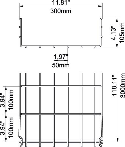 Popis výrobkuMřížový žlab s vytvarovanou integrovanou spojkou s výškou bočnice 105 mm.