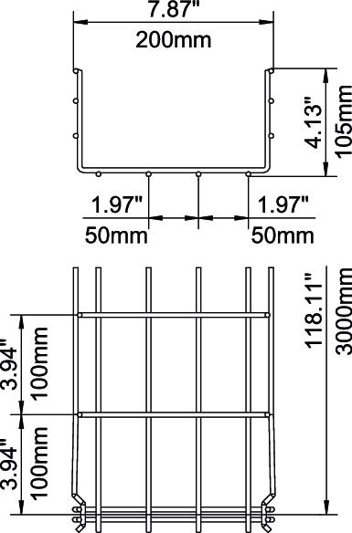 Popis výrobkuMřížový žlab s vytvarovanou integrovanou spojkou s výškou bočnice 105 mm.