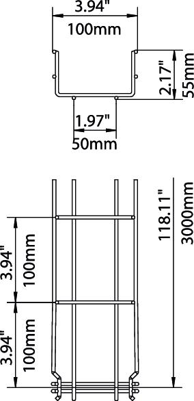 Popis výrobkuMřížový žlab s vytvarovanou integrovanou spojkou s výškou bočnice 55 mm.