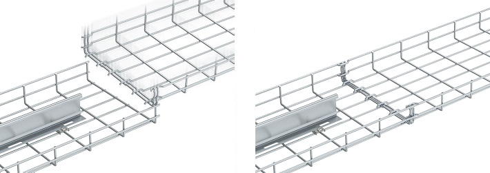 U běžného podélného spojení není zapotřebí spojovacích součástí ani montážního nářadí. Komponenty do sebe stačí zasunout – a je hotovo. Tento přístup eliminuje skladování spojovacích dílů a tím i zbytečné náklady. Nový mřížový žlab GR-Magic® tak výrazně zrychluje montáž, aniž by přitom utrpěla stabilita a nosnost. Zkoušky zatížitelnosti prokázaly, že systémy GR-Magic® jsou zcela rovnocenné tradičním šroubovým spojením. Přednosti těchto systémů dokládají i jejich elektrické vlastnosti: Bez nejmenších problémů splňují elektrické a mechanické hodnoty požadované v nové normě IEC/EN 61537 resp. ve směrnici VDE 0639. Systém GR-Magic® lze kromě toho na výložník upevnit bez použití šroubů.