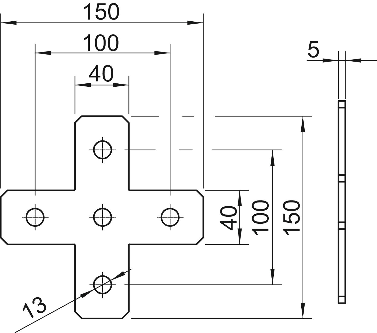 Popis výrobkuSpojovací deska s pěti otvory pro křížové spojení profilových lišt 41 × 41 mm a 41 × 21 mm.