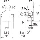 Popis výrobkuTřmenová příchytka s patkou T, plastová přítlačná opěrka z polypropylénu. Pro svislou a vodorovnou montáž 1 jednotlivého kabelu na profilovou lištu C. Pro šířku výřezu 16–17 mm. S jednochodým šroubem na přítlačné opěrce, univerzální šestihranná hlava šroubu vel. 10, s drážkou pro plochý a křížový šroubovák. Vhodná pro montáž v interiéru i ve venkovních prostorách. Doporučujeme použít podélnou opěrku.