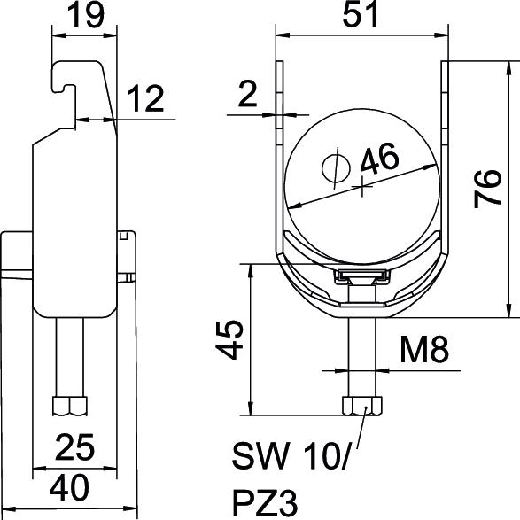 Bez obsahu halogenů Ano CO2 stopa (GWP) od kolébky po bránu 0,4253 kg CO2e / 1 Kus Délka 25 mm Délka – vnější rozměr 40 mm Dodatek – materiál Hliník Dodatek – povrch neošetřeno Jakost materiálu vany Polypropylén Materiál Hliník Materiál vany Plast Max. utahovací moment 2 Nm Počet kabelů/trubek 1 Pro lištu s šířkou výřezu (s intervalem), max. 22 mm Pro lištu s šířkou výřezu (s intervalem), min. 18 mm Pro průměr trubky max. 46 mm Pro průměr trubky min. 40 mm Rozměr 40-46mm Rozměr G (mm) M8 Rozměr H 76 mm Rozměr A 25 mm Rozměr B 51 mm Rozměr C 40 mm Rozměr L 45 mm Rozměr t 2 mm Šířka 51 mm Šířka výřezu 10 mm S plastovou opěrkou Ano S podélnou opěrkou Ne Tloušťka plechu 2 mm Upínací rozsah D, max. 46 mm Upínací rozsah D, min. 40 mm Výška 76 mm Závit M8 Způsob montáže Profilová lišta - Všechny typy
