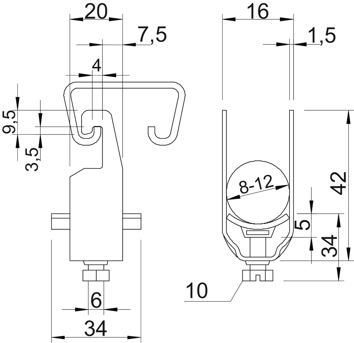Bez obsahu halogenů Ne CO2 stopa (GWP) od kolébky po bránu 0,0605 kg CO₂e / 1 Kus Dodatek – materiál Ocel Dodatek – povrch žárově zinkováno Materiál Ocel Materiál vany Ocel Max. utahovací moment 3 Nm Nárazuvzdorný Ne Počet kabelů/trubek 1 Povrch žárově zinkováno ponorem Pro lištu s šířkou výřezu (s intervalem), max. 22 mm Pro lištu s šířkou výřezu (s intervalem), min. 18 mm Rozměr 8-12mm Rozměr G (mm) M6 Rozměr H 42 mm Rozměr A 20 mm Rozměr B 16 mm Rozměr C 34 mm Rozměr L 34 mm Rozměr t 1,5 mm Rozměr x 5 mm S kovovou opěrkou Ano S plastovou opěrkou Ne S podélnou opěrkou Ne Upínací rozsah D, max. 12 mm Upínací rozsah D, min. 8 mm Způsob montáže Profilová lišta - Všechny typy