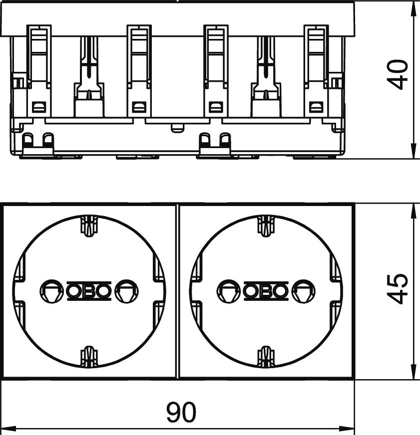 Popis výrobkuZásuvka s ochranným kontaktem, dvojitá, 0°, se zvýšenou ochranou proti nebezpečnému dotyku a násuvnými svorkami, 2pól., 16 A, 250 V~, se spojovacími svorkami podle IEC 60884-1.
